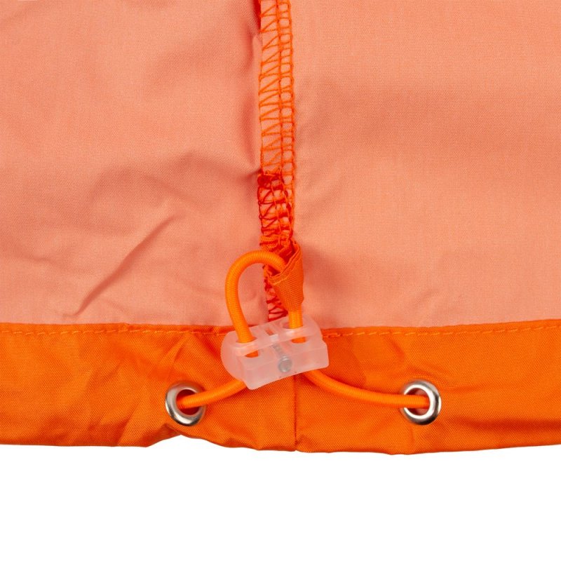 Тонкая гладкая ткань дюспо с притягательным матовым блеском почти бесшумна в использовании и пригодна для большого количества цветов печати. Качественный пошив ветровки добавляет ей презентабельности и гарантирует долгое использование, а яркий цвет привлекает внимание и не выгорает со временем.