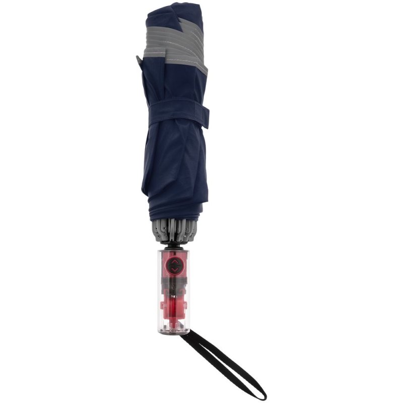 Складной зонт Futurum привлекает внимание оригинальным дизайном. Светоотражающий кант, необычная конструкция купола, благодаря которой при сложении все капли остаются снаружи, и ручка из прозрачного пластика, не скрывающая ярких деталей внутри, добавляют внешнему виду зонта футуристичности.
