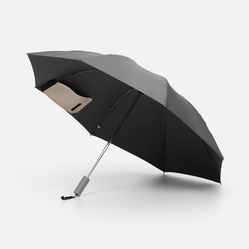 Складываясь после дождя, он прячет мокрую поверхность внутри, а сухая остается снаружи — в закрытом положении зонт не побеспокоит окружающих и не намочит одежду. Благодаря застежке на ремешке, зонт удобно подвесить, например, на рюкзак.