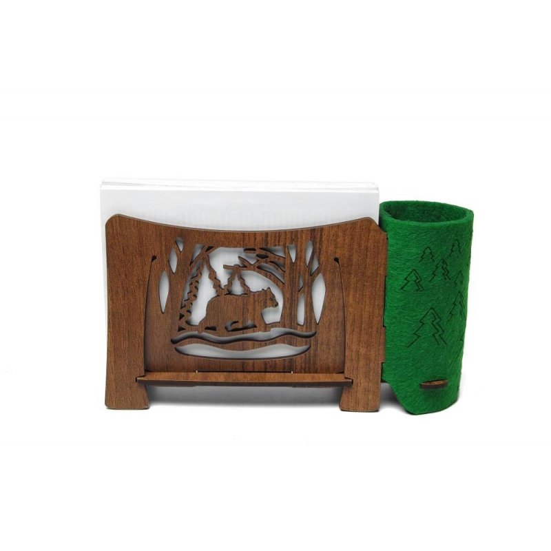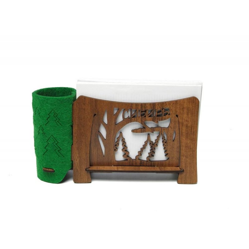 Поставьте на свой стол подставку для бумаг и ручек "Сибирь" - с ажурными стенками и ярким фетровым стаканом - и она точно будет радовать вас полезностью и изяществом.