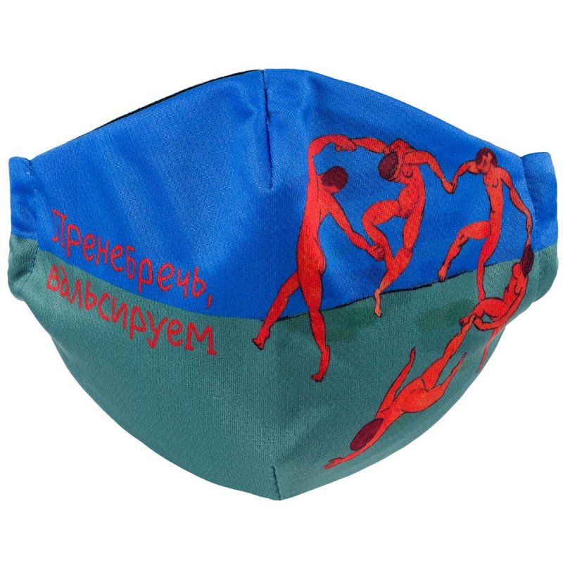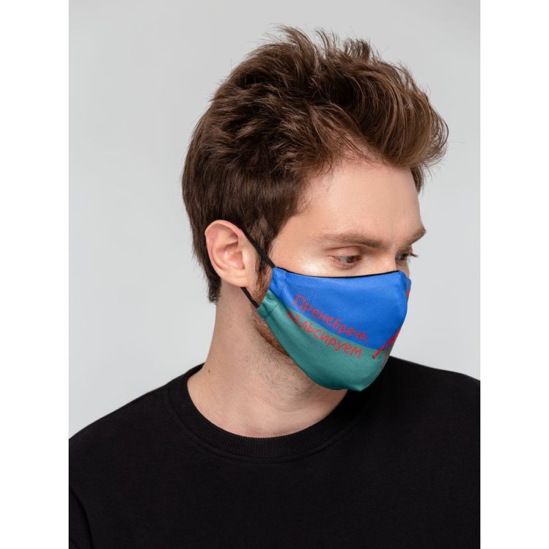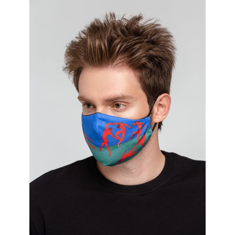 Многоразовая маска из дышащей ложной сетки с ярким принтом с гигиенической хлопковой подкладкой и заушниками-резинками.