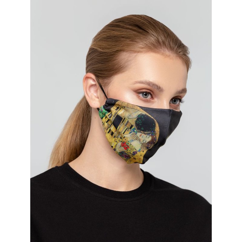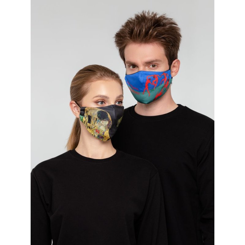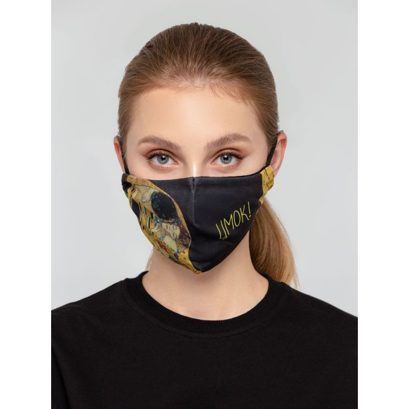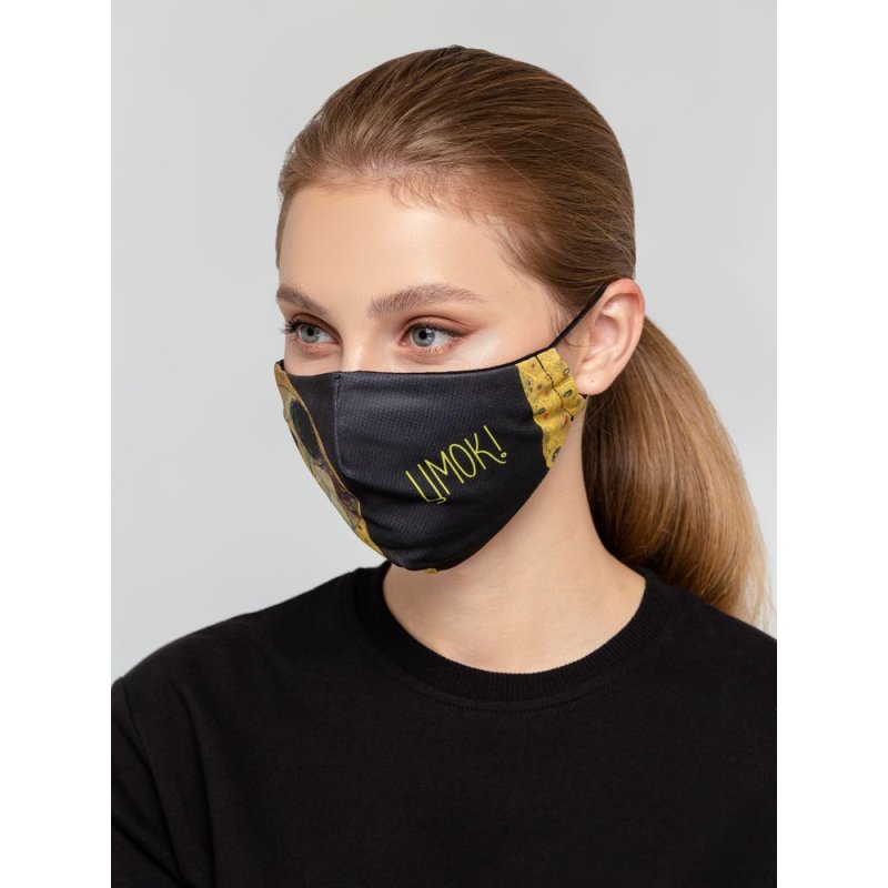 Многоразовая маска из дышащей ложной сетки с ярким принтом с гигиенической хлопковой подкладкой и заушниками-резинками.
