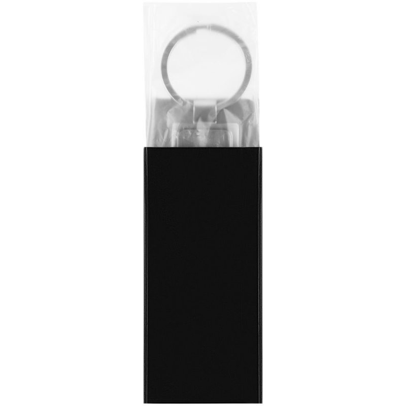 Лаконичный металлический брелок прямоугольной формы. Лицевая сторона имеет вставку с зеркальным эффектом.