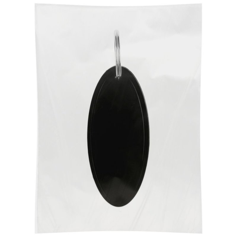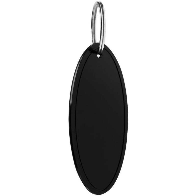 Лаконичный брелок из полипропилена с металлическим кольцом.