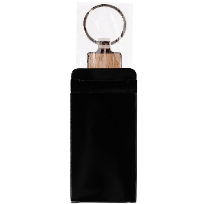 Прямоугольный металлический брелок со вставкой из натурального дерева. Подойдет для клиентов, отдающих предпочтение качественным натуральным материалам.