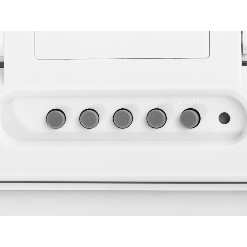 Благодаря встроенным датчикам метеостанция показывает температуру воздуха, уровень влажности, дату и время.