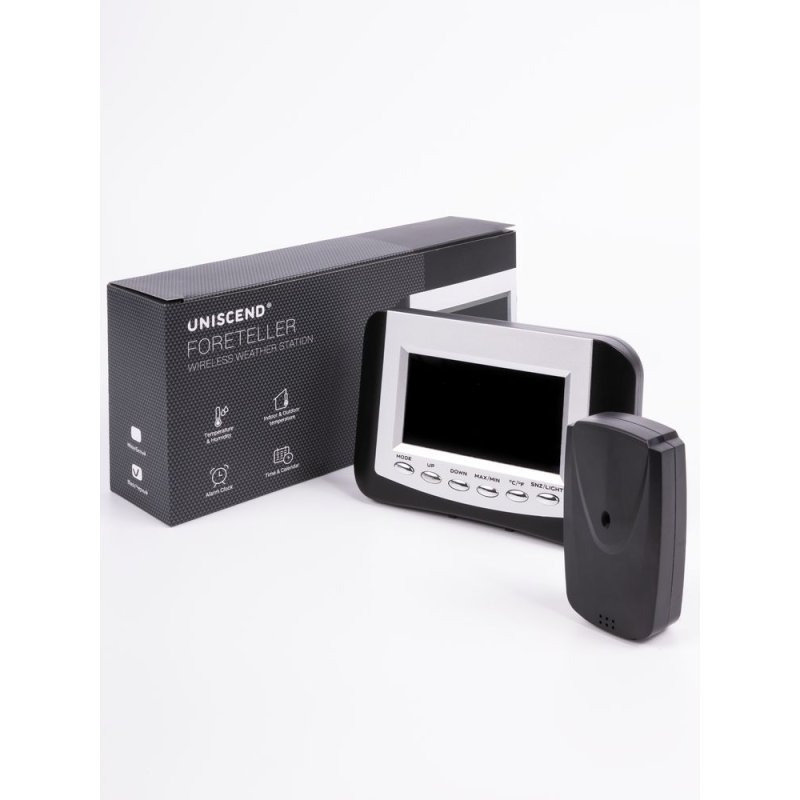 - Размеры:метеостанция: 14,5х3,5х9,5 см, датчик: 4,6х2,2х8,2 см, коробка: 23х5,7х11 см