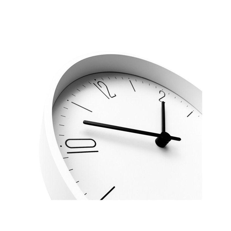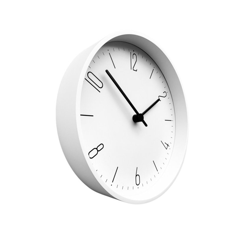Белый обод, белый циферблат с черными цифрами - вечная классика для украшения интерьеров.