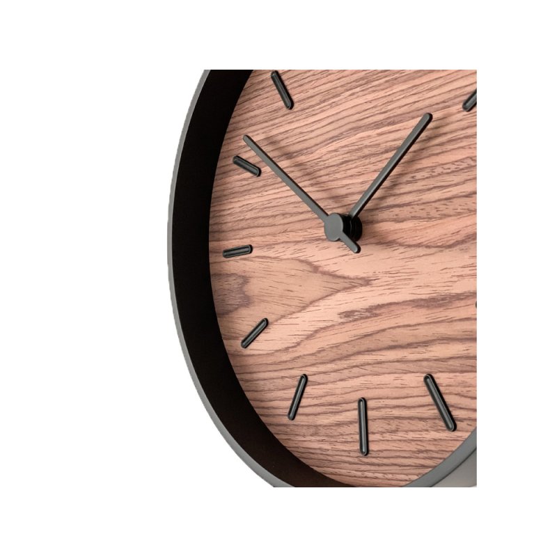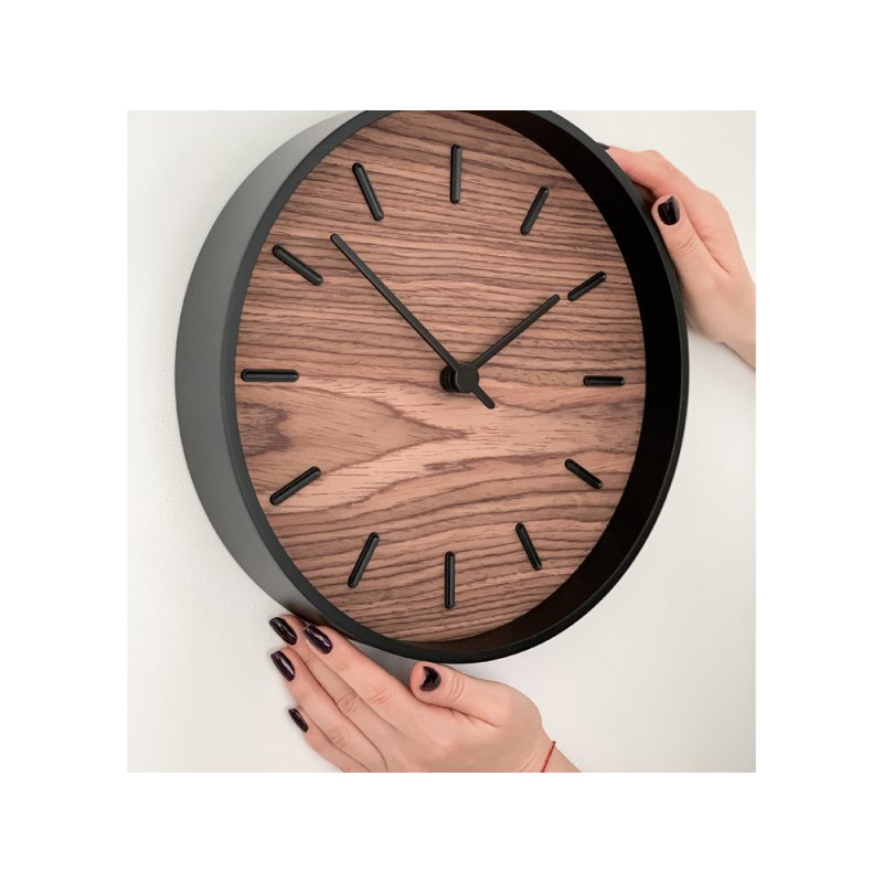 Tiger - это современные настенные часы из натурального шпона с часовыми метками в черном цвете. Циферблат натурального цвета сделан из шпона ореха, а обод, стрелки и часовые метки выполнены в черном цвете.