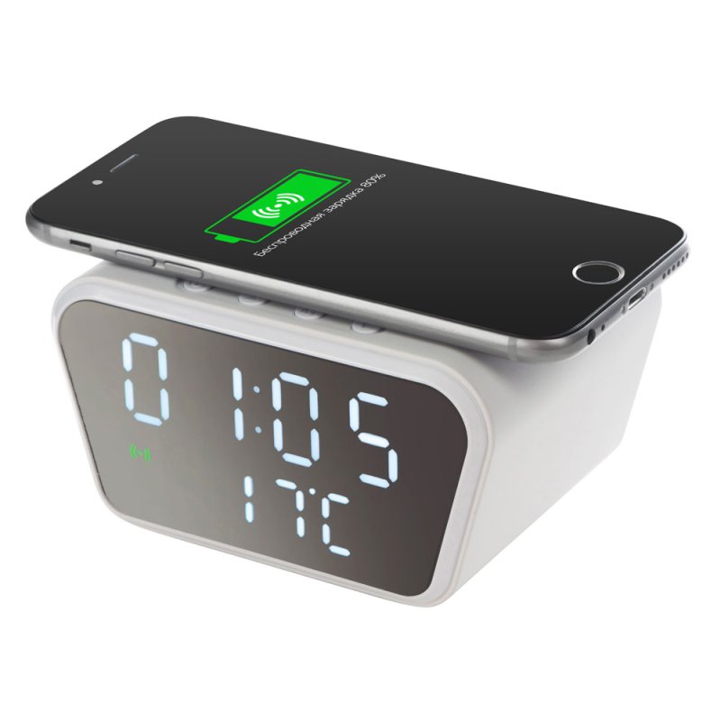 Настольные часы с функцией беспроводной зарядки позволят не только вовремя проснуться, но и восполнить за ночь уровень батареи вашего смартфона. Зеркальный LED-дисплей часов интересно выглядит в интерьере, а степень яркости можно изменить под себя.