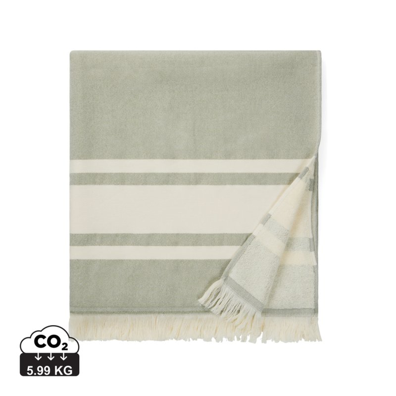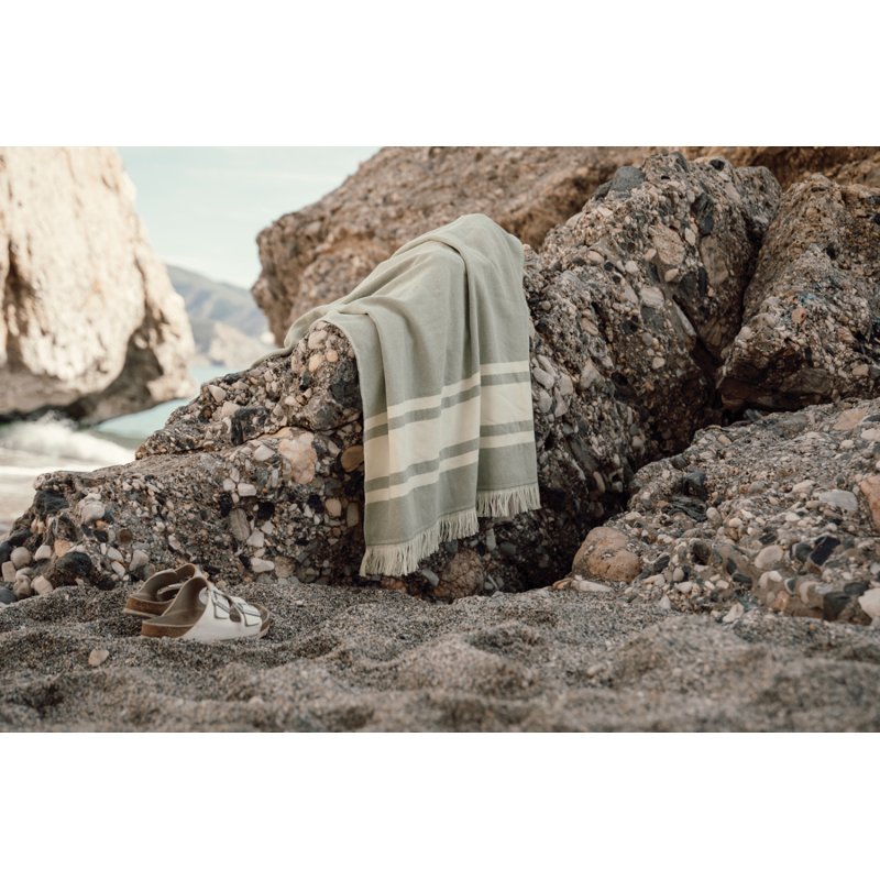 Мягкое полотенце VINGA Tolo на 75% состоит из хлопка и на 25% — из полиэстера. Благодаря смешанному составу получилась прочная и приятная на ощупь ткань, которая хорошо впитывает влагу. Полотенце отличается двумя разными типами фактуры: одна сторона полотенца махровая, вторая — из плотного, но мягкого полотняного переплетения. Размер: 180х80 см. Размер бахромы: 5 см. Плотность ткани: 360 г/м². Сертифицировано OEKO-TEX® STANDARD 100, 09.HIN.68091, Hohenstein HTTI.