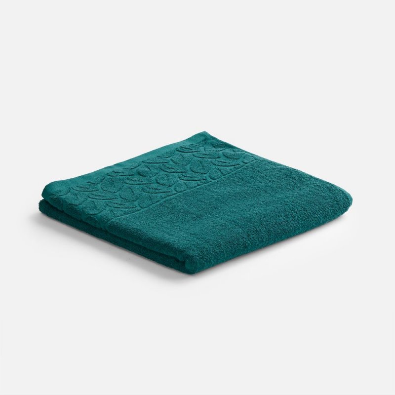 Светлые оттенки в сочетании с широким бордюром с рельефным растительным узором придают полотенцу элегантный и свежий вид.