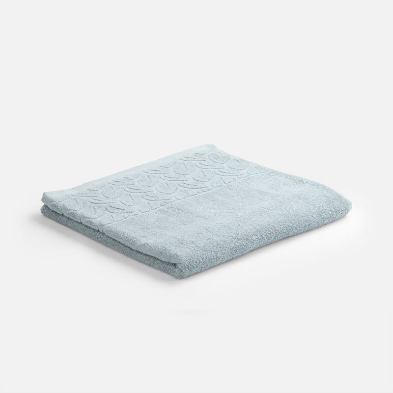 Светлые оттенки в сочетании с широким бордюром с рельефным растительным узором придают полотенцу элегантный и свежий вид.
