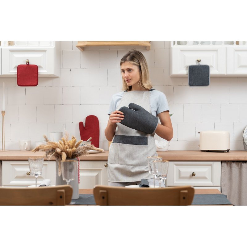 Износостойкая ткань, имитирующая лен, обработана пропиткой от грязи и воды, что делает ее применение для кухни и дома практичным, а уход — легким.