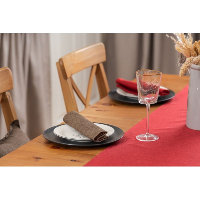 Износостойкая ткань, имитирующая лен, обработана пропиткой от грязи и воды, что делает ее применение для кухни и дома практичным, а уход легким.