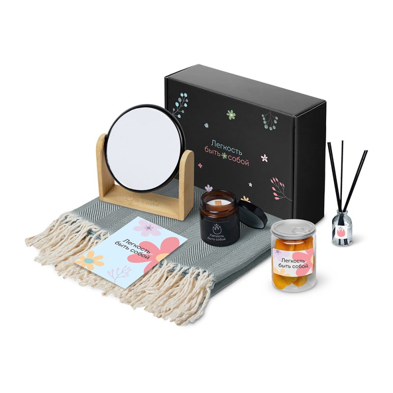 - Материал товара:плед - 100% хлопок, свеча - стекло, мешок - нетканый материал (спанбонд), коробка - картон, зеркало - бамбук, пластик, стекло, манго -пластик, диффузор - стекло