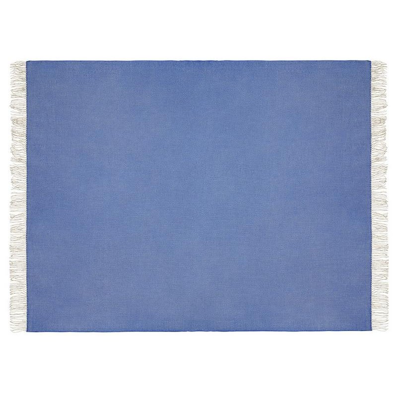Большой размер этого мягкого плотного пледа позволяет использовать его как одеяло и как покрывало для вашего интерьера. По бокам плед украшен бахромой. В комплекте идет упаковочная синяя лента, на которой можно сделать нанесение вашего логотипа.