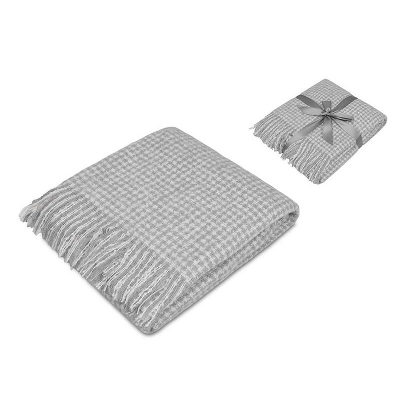 Супер мягкий и теплый плед согреет в холодный день и внесет уют в ваш интерьер. По бокам плед украшен бахромой. В комплекте серая лента, на которой можно нанести ваш логотип.