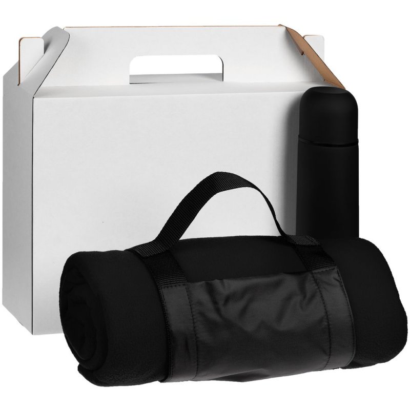 - Материал:плед - флис, плотность 180 г/м²; термос - нержавеющая сталь, 304 внутри, 201 снаружи, пластик, покрытие софт-тач; коробка - микрогофрокартон