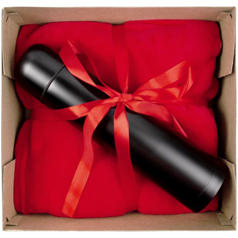 - Материал:термос - нержавеющая сталь, корпус; пластик, крышка; плед - полиэстер 100%, длинноворсный флис, 220 г/м²; коробка - микрогофрокартон