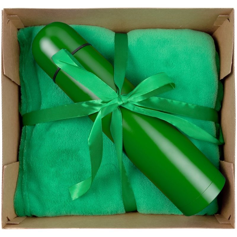 - Материал:термос - нержавеющая сталь, корпус; пластик, крышка; плед - полиэстер 100%, длинноворсный флис, 220 г/м²; коробка - микрогофрокартон