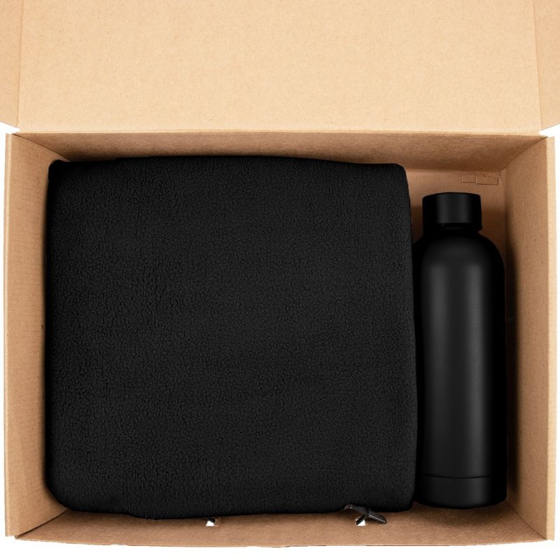 - Материал:бутылка - металл, пластик; плед - флис; коробка - микрогофрокартон, пластик