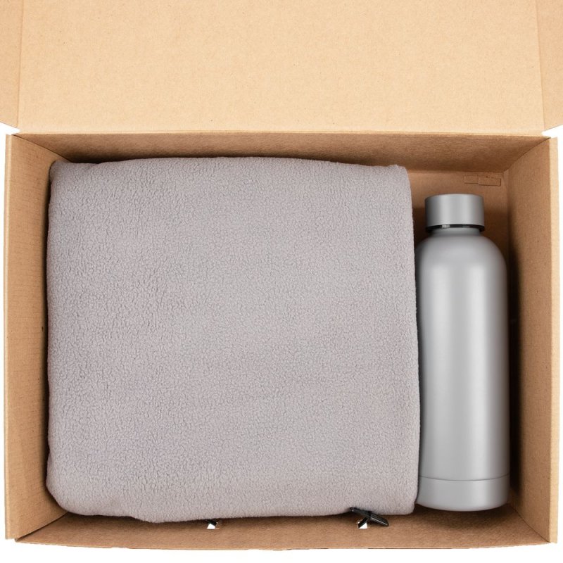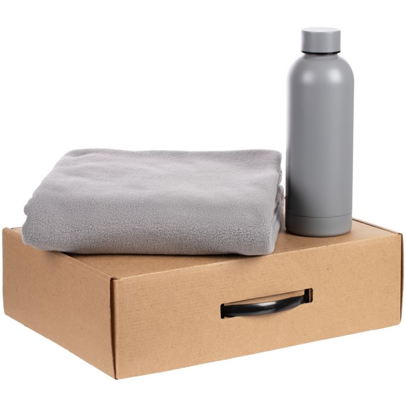 - Материал:бутылка - металл, пластик; плед - флис; коробка - микрогофрокартон, пластик
