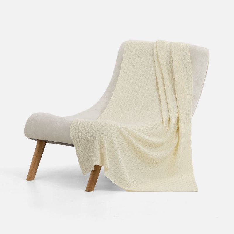 Глубина рельефного орнамента добавляет динамику даже в монохромном исполнении. Плед Braidera — удачное сочетание декоративной выразительности и уютной функциональности.
