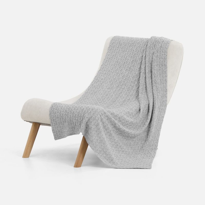 Глубина рельефного орнамента добавляет динамику даже в монохромном исполнении. Плед Braidera — удачное сочетание декоративной выразительности и уютной функциональности.