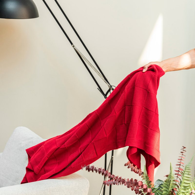 Красный – цвет энергии и смелых решений. Наш красный плед, словно язык пламени, внесёт яркий акцент, зарядит энергией и создаст атмосферу праздника. Подарите себе моменты уюта и тепла – выберите плед Cella в Portobello и наслаждайтесь комфортом каждый день!
