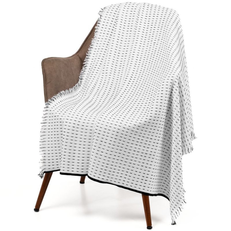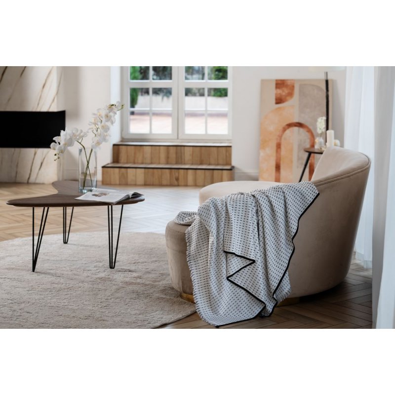 Плед из мягкого акрила Fringy особенный и неповторимый. Он выигрышно выделяется необычным узором — контрастными с основным полотном стежками, дополненными элегантной и аккуратной бахромой. Словно соединив в себе искусство вязания с шитьем, плед гармонично впишется в дизайн современной гостиной или спальни.
