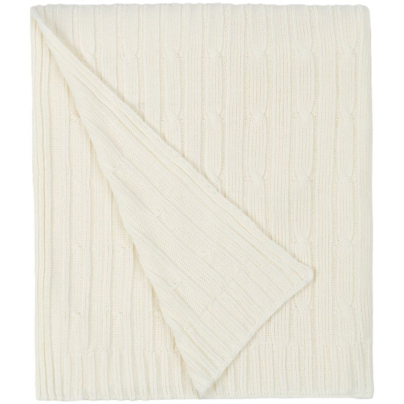 Модель: однотонный плед с фактурной вязкой, которая позволяет сделать его воздушным и объемным. Чередуя различные типы петель на гладком полотне, можно вывязать любую графику — логотип, текст, товарный знак.