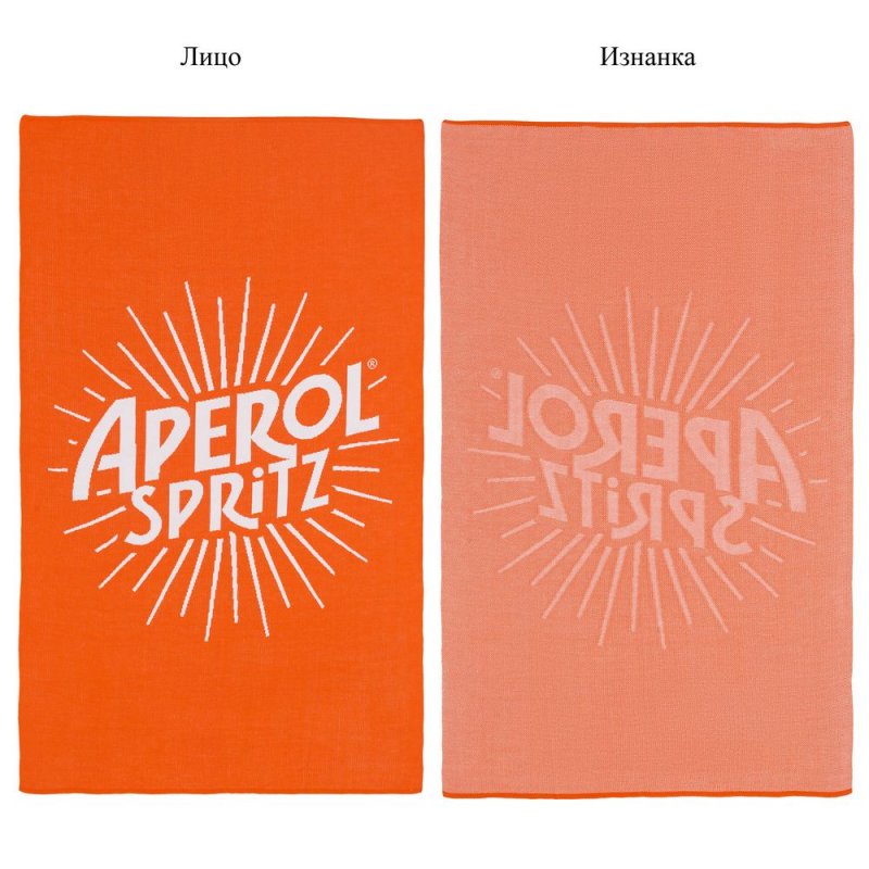 Плед с вывязанным логотипом и индивидуальным рисунком в фирменной цветовой гамме.