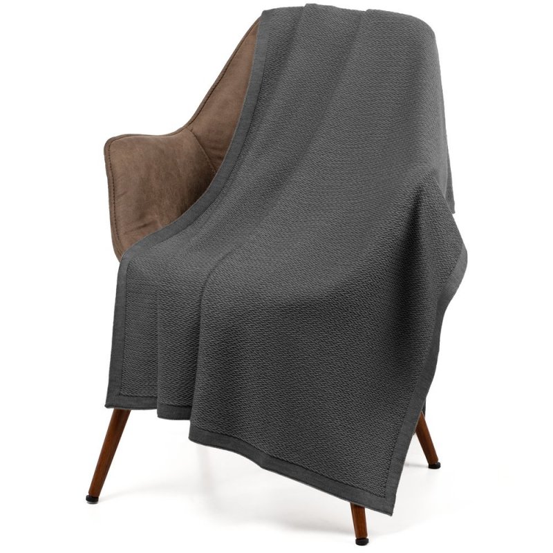 Плед из полушерстяной пряжи, поэтому прекрасно согревает и неприхотлив в уходе.