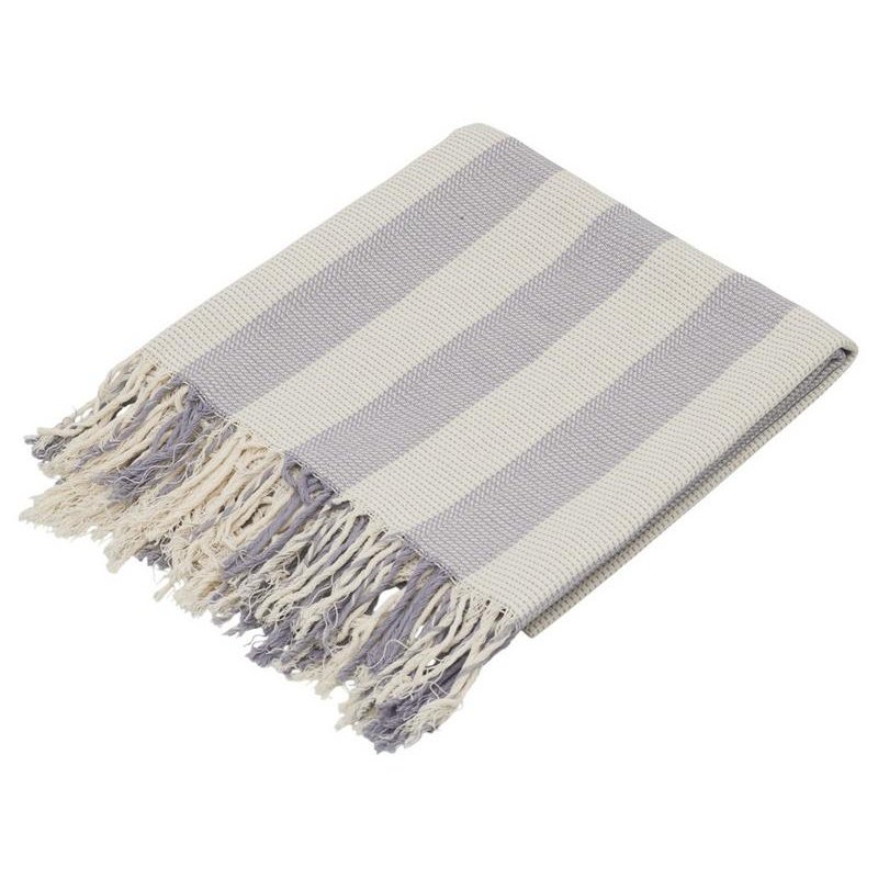 Хлопковый натуральный плед в модную полоску можно использоватькакодеяло или как покрывало для украшения интерьера. Бахрома по бокам добавит комфорта и стиля. Немаркие цвета и легкий уход создают дополнительный комфорт при использовании.