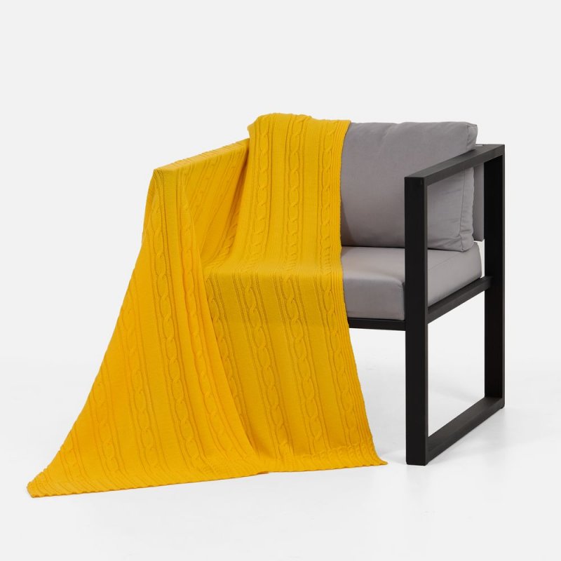 Тонкое переплетение вертикальных кос-жгутов создает благородный стиль, где простота линий встречается с изысканной рельефной текстурой. Плед из мягкого акрила сохраняет тепло, оставаясь удивительно легким и воздушным.
