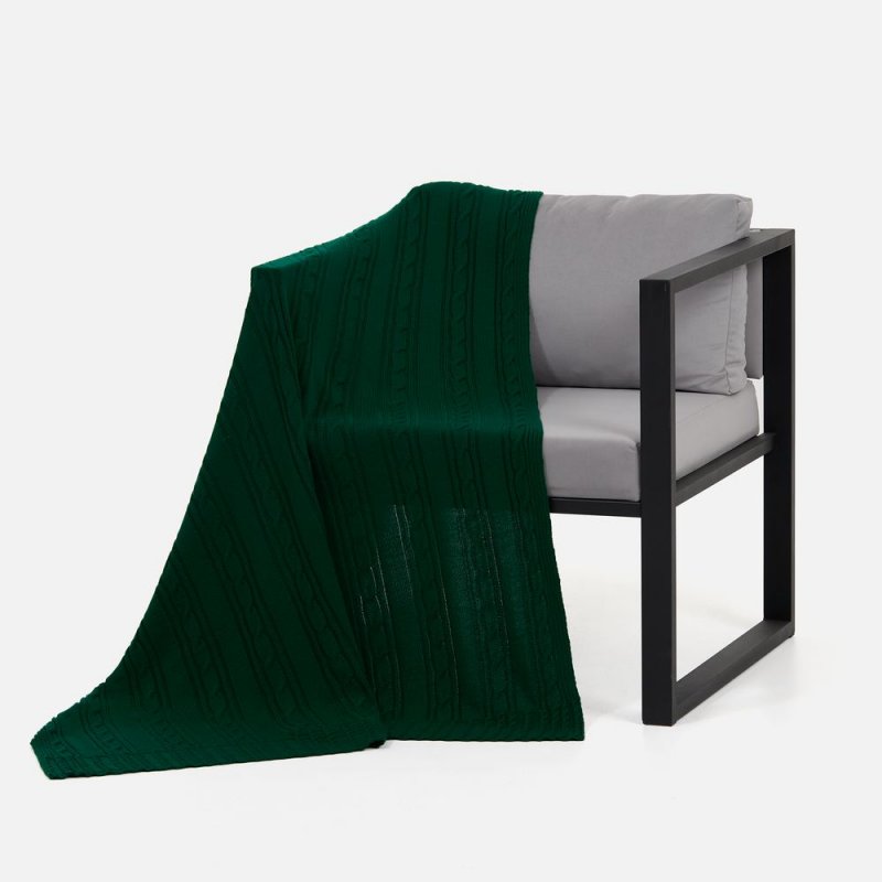 Тонкое переплетение вертикальных кос-жгутов создает благородный стиль, где простота линий встречается с изысканной рельефной текстурой. Плед из мягкого акрила сохраняет тепло, оставаясь удивительно легким и воздушным.
