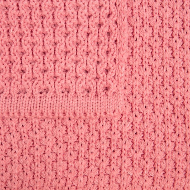 Модель: однотонный плед с фактурной вязкой, которая позволяет сделать его воздушным и объемным. Чередуя различные типы петель на гладком полотне, можно вывязать любую графику — логотип, текст, товарный знак.