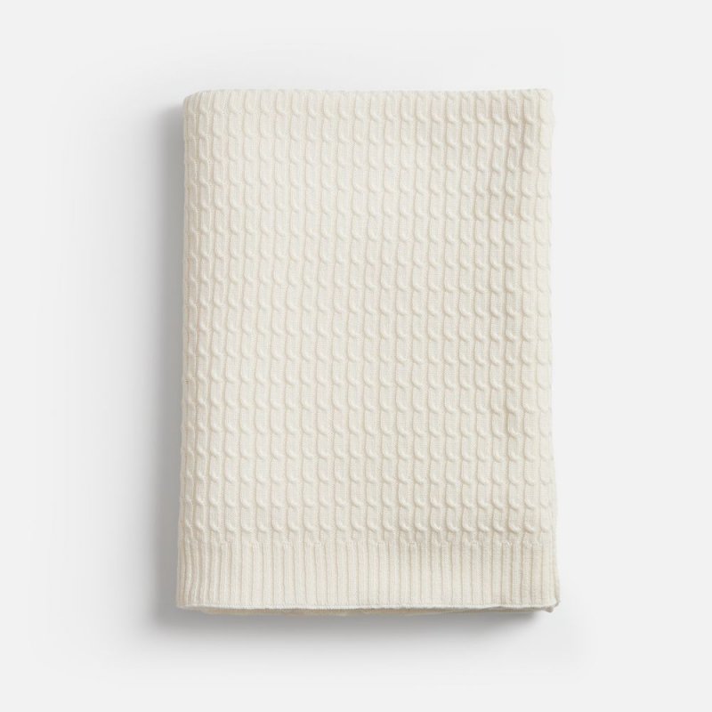 Модель: однотонный плед с фактурной вязкой, которая позволяет сделать его воздушным и объемным. Чередуя различные типы петель на гладком полотне, можно вывязать любую графику — логотип, текст, товарный знак.