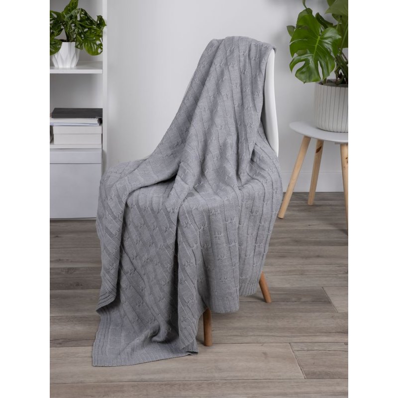 Вязаный плед фактурной вязки из меланжевой пряжи.
