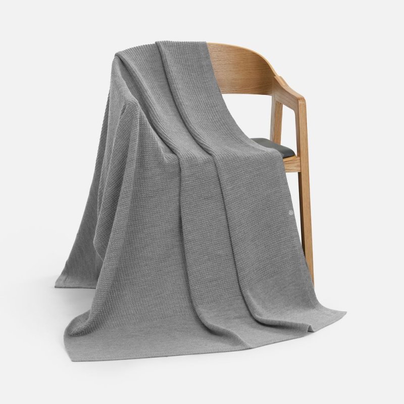 Плед Voyage соткан из мягкого сочетания шерсти и акрила — нежный, теплый и невесомый, он словно создан для уютных вечеров. Кнопка позволяет превратить плед в элегантную накидку, когда воздух становится прохладнее.