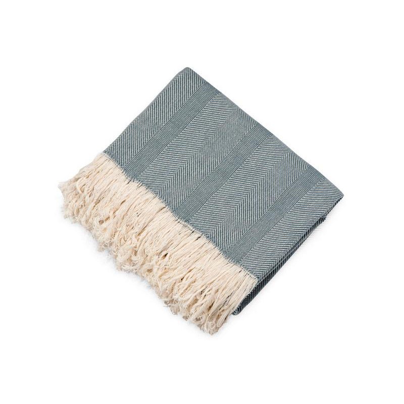 Плотный плед из натурального хлопка с бахромой по бокам можно использовать как одеяло или как покрывало для украшения интерьера.
