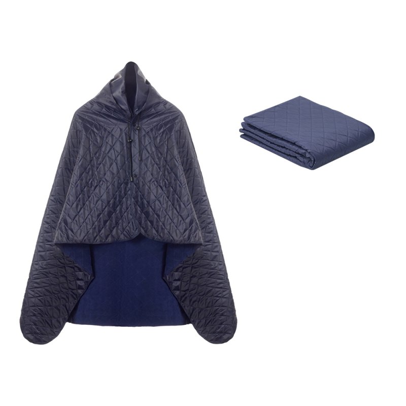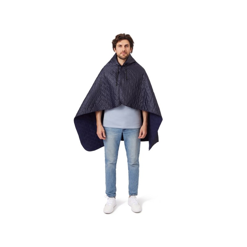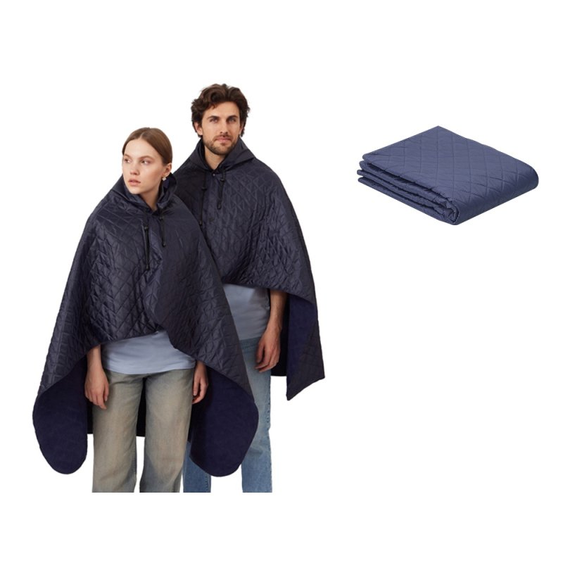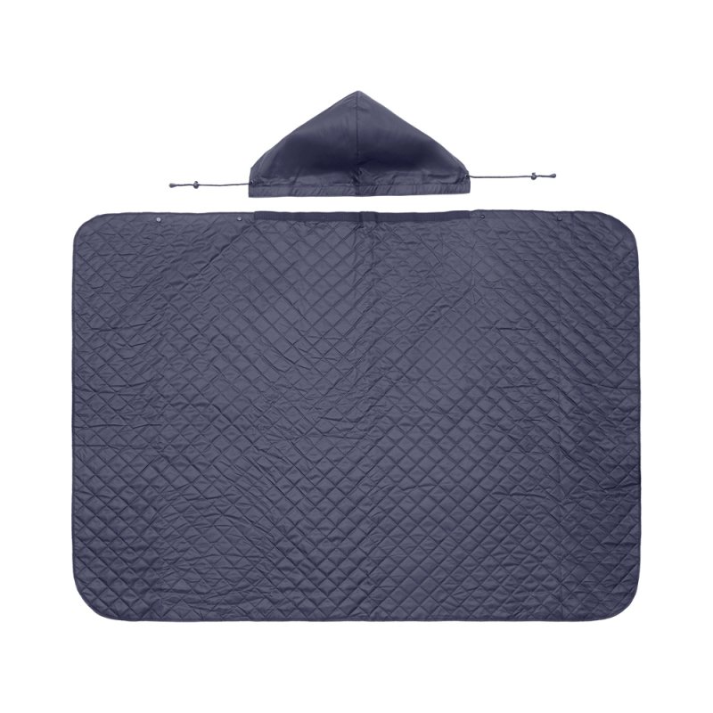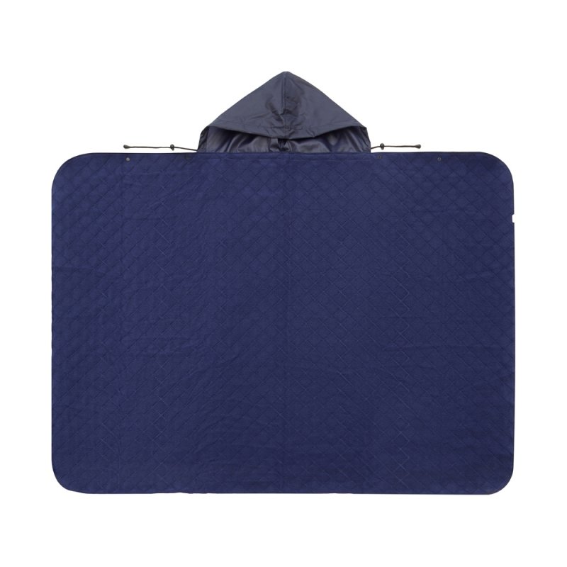 На внутренней стороне из флиса приятно и тепло сидеть, а наружная сторона из полиэстера с водоотталкивающим покрытием не позволяет пледу намокнуть или сильно испачкаться. Для больше удобства использования пледа во время дождя в комплекте идет капюшон, который фиксируется с помощьюлипучки. Накинув плед на плечи, застегните его на кнопки вверху и наденьте капюшон. Вы не промокните во время неожиданного дождя!