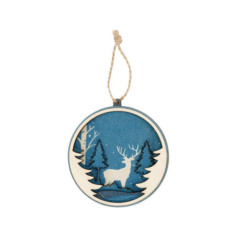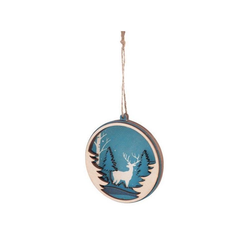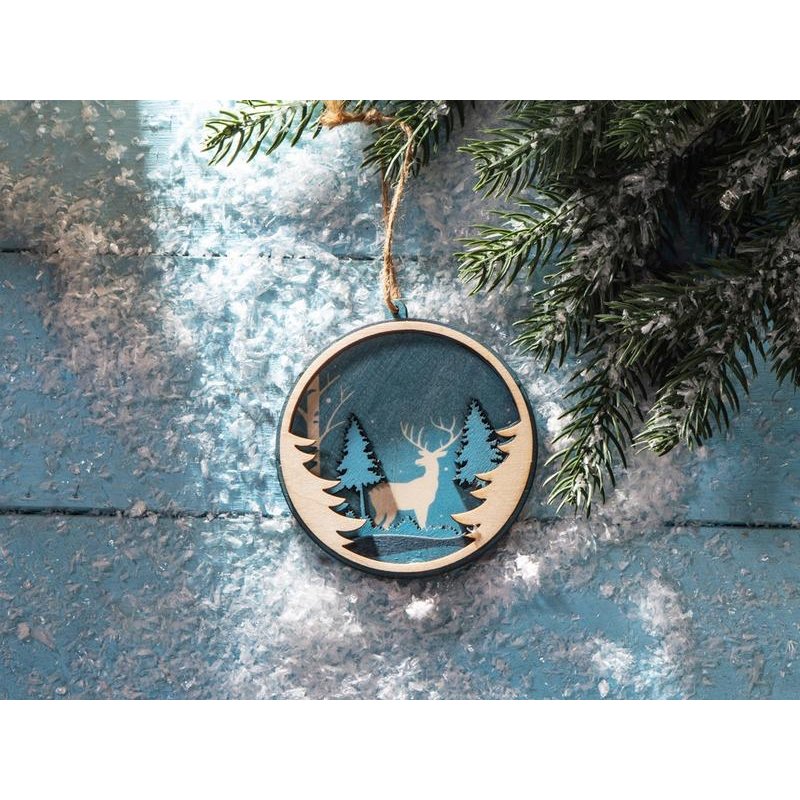Игрушка выполнена из трех слоев фанеры и прекрасно подходит для того, чтобы украсить новогодний набор, подарок либо стать самостоятельным небольшим памятным презентом. Игрушка имеет свой рельеф: приглядитесь, и вы заметите, что фигуры пейзажа находятся на разных слоях фанеры, что придает изображению объемность.