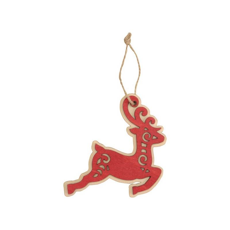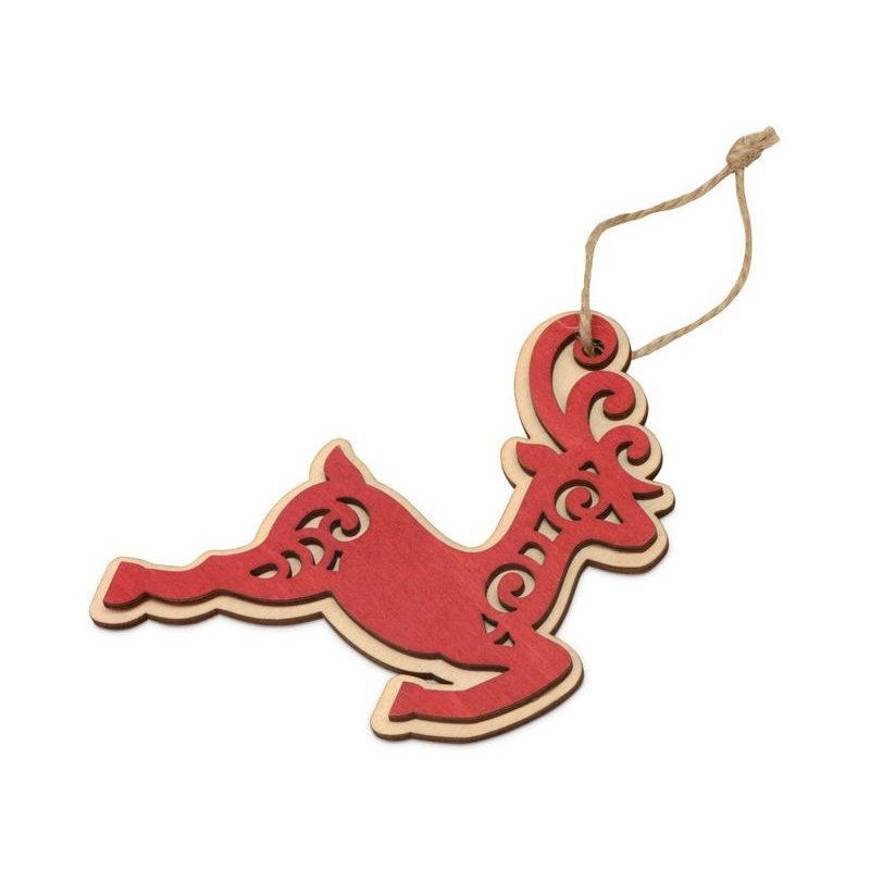 Елочная игрушка в виде оленя изготовлена из нескольких слоев березовой фанеры и тонирована в красный цвет. Игрушка прекрасно подходит на роль рекламного носителя, может стать приятным дополнением к основному подарку или отдельным небольшим сувениром, а также частью новогоднего составного набора. Поле для нанесения достаточно большое и заметное, чтобы разместить свое лого или новогодние пожелания, а сделать изображение выделяющимся можно при помощи заливки полимерной смолой.