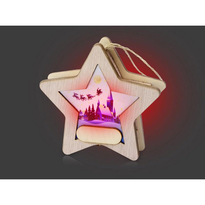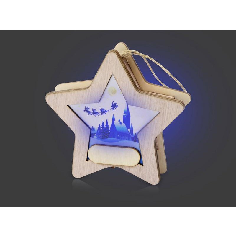 Новогодняя подвеска для елки станет прекрасным вариантом подарка: посмотрите, эти игрушки видно не только при свете дня, но и в темноте, ведь они могут светить сами! Игрушка с подсветкой выполнена из фанеры, фрагмент с изображением — напечатан на пропускающем свет материале. Подвеска сияет мягким разноцветным светом, подчеркивая пейзаж. Станет прекрасным вариантом для подарка, который будет радовать ваших адресатов долгие годы, каждую зиму красуясь на зеленых лапах елки.