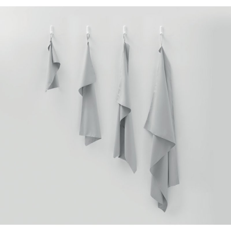 Полотенце из микрофибры (90% полиэстера и 10% полиамида) с эластичной петлей для подвешивания. Легкое и быстросохнущее. Размер 100 см x 150 см.