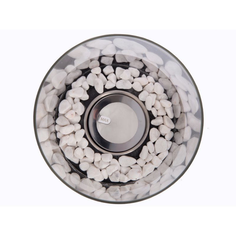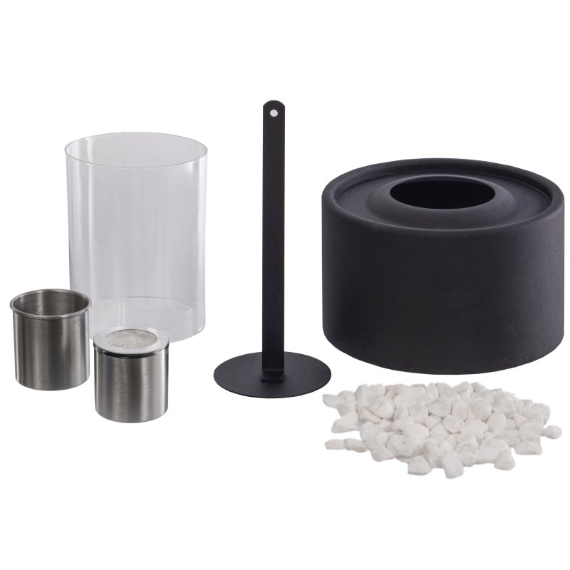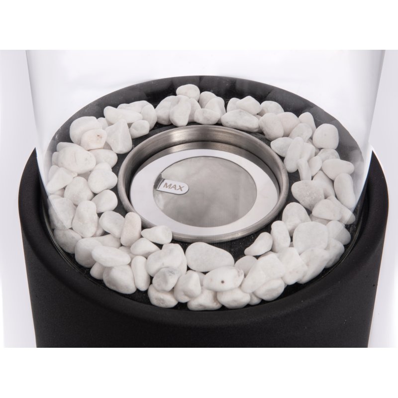 - Комплектность:металлическая база, стеклянная колба, емкость для топлива, заглушка для тушения пламени, керамическая вата, декоративные камни