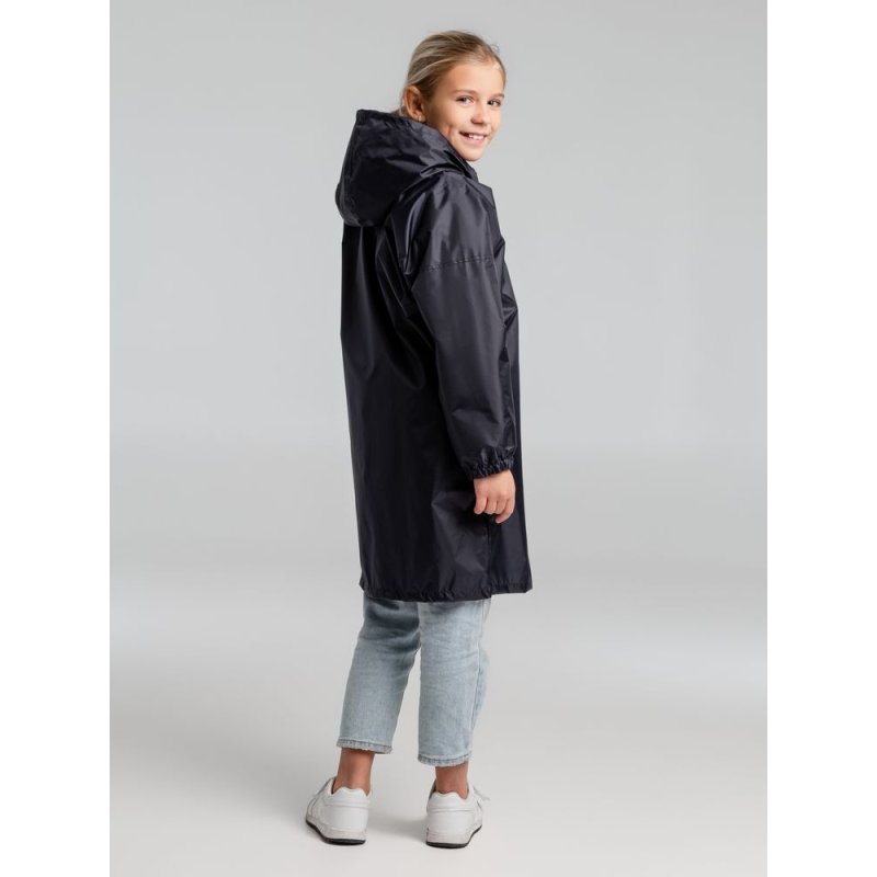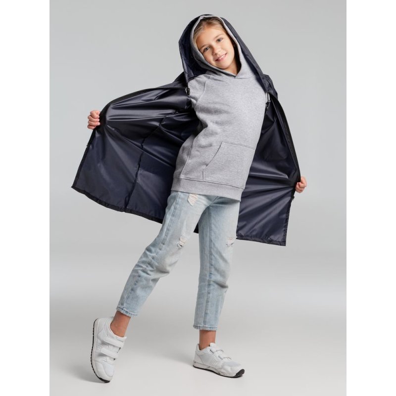 Детский дождевик на молнии из таффеты с влагозащитным покрытием. Складывается в мешочек — удобно брать с собой.