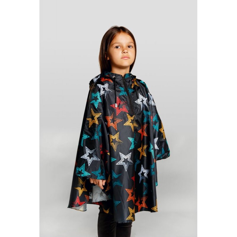 Легкий городской дождевик-пончо с регулируемым капюшоном из влагоустойчивого материала подходит для защиты в непогоду, свободно одевается поверх одежды и небольшого рюкзака.